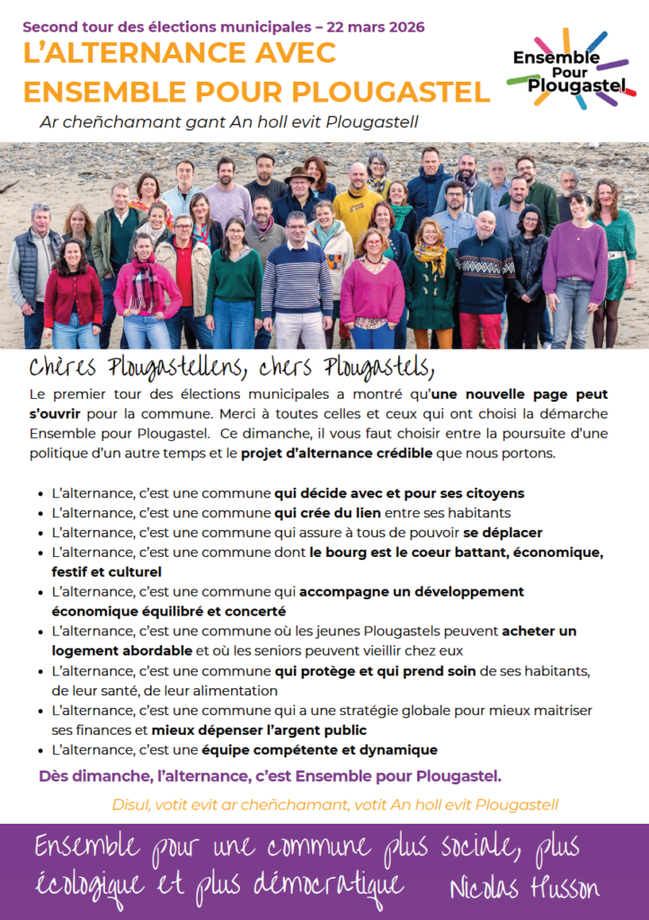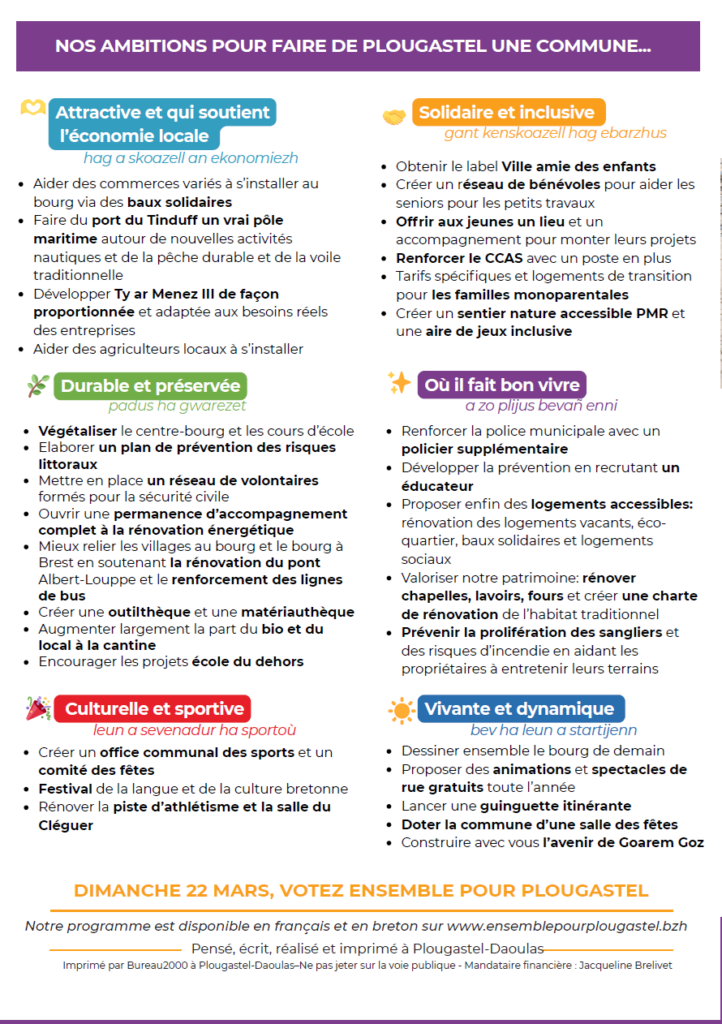 Découvrez notre profession de foi pour le second tour de l’élection municipale à Plougastel-Daoulas.